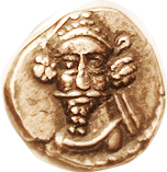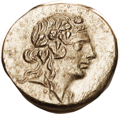 Æ23, c. 120-63 BC, Dionysos head r/Cista mystica & thyrsos,