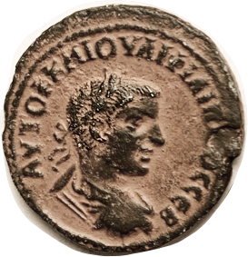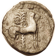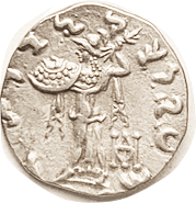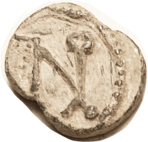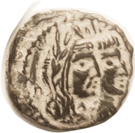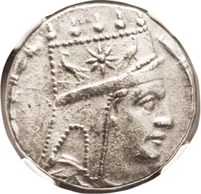 13 BAKTRIA Eukratides I, 171-135 BC, Obol, Diademed hd r/Dioscuri caps, PK