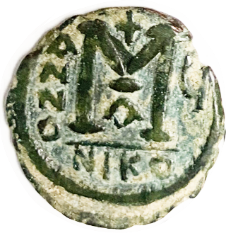 hldg Nike, lgnds, VF, dark patina with strong orangy