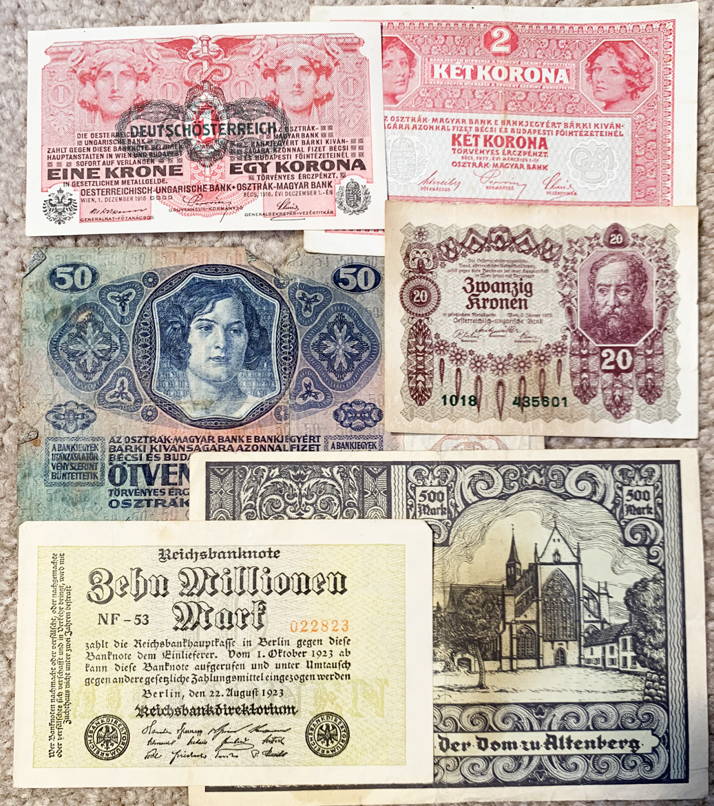 572 GERMAN & Austrian banknotes c. 1920, 22 diff, abt half ragged, half are