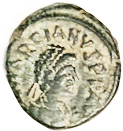 Æ18, c. 100-27 BC, Zeus head r/tripod & lgnds, VF+, obv sl