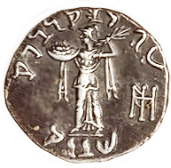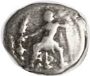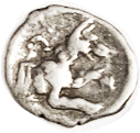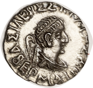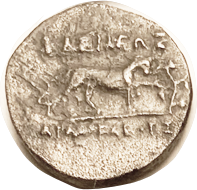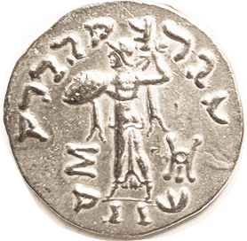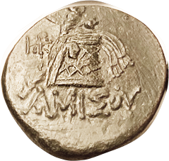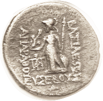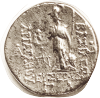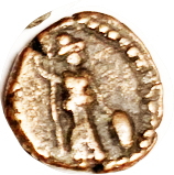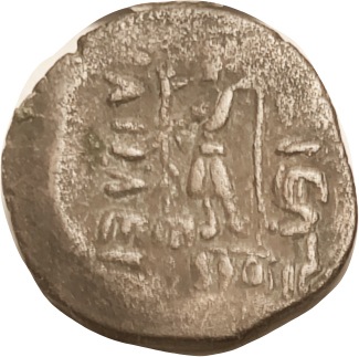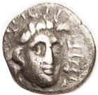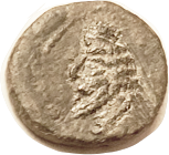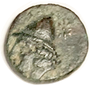 13 BAKTRIA Eukratides I, 171-135 BC, Obol, Diademed hd r/Dioscuri caps, PK