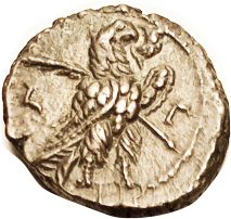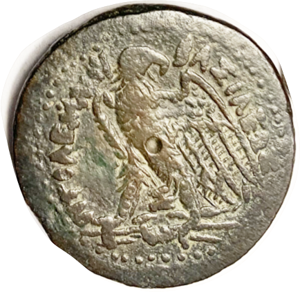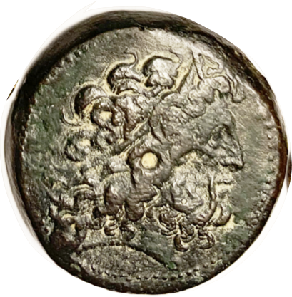 Æ20, "Pseudo-Autonomous," 1st cent BC, Zeus head r/Zeus