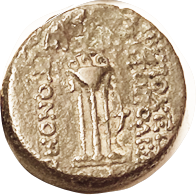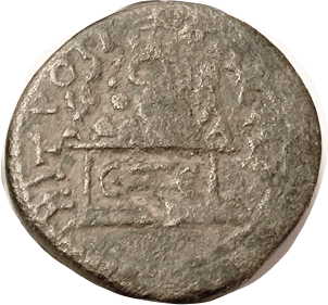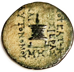 Æ18, c. 100-27 BC, Zeus head r/tripod & lgnds, VF+, obv sl