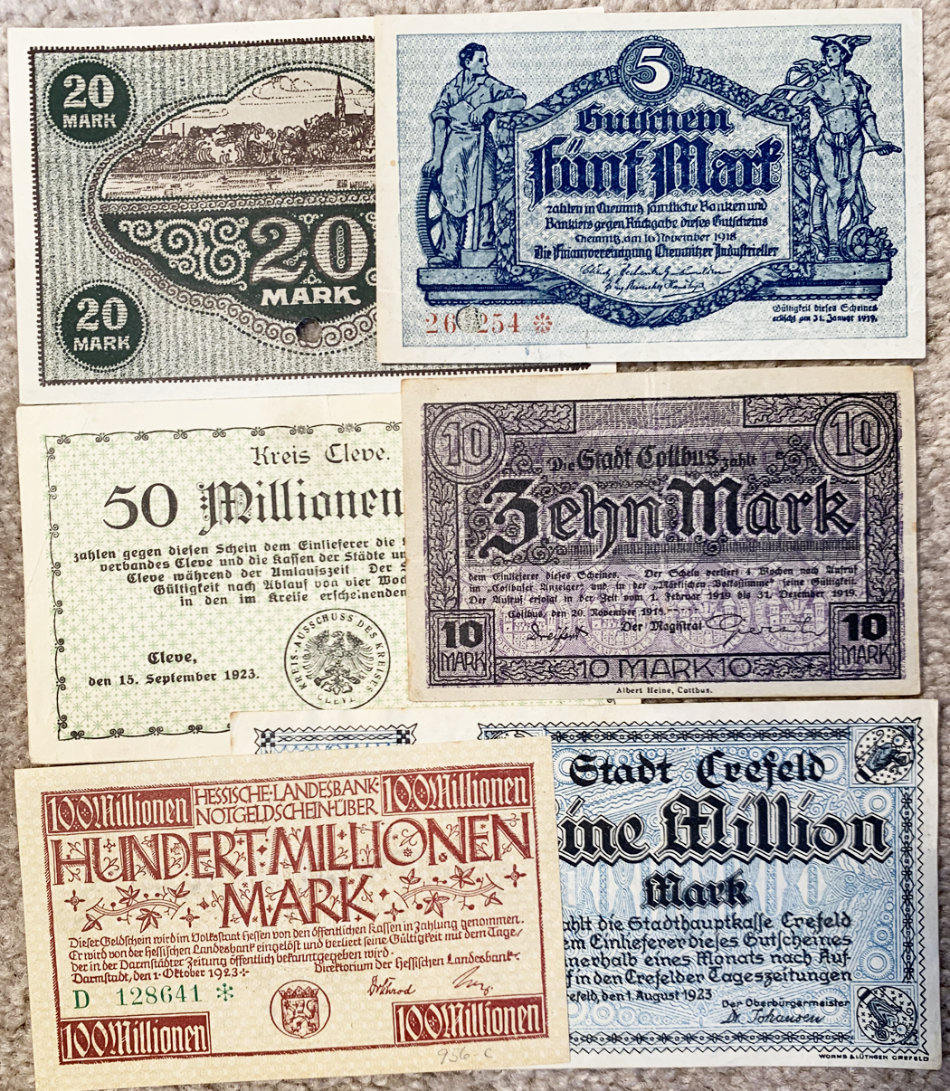 571 GERMAN local Notgeld LARGE size/denomination notes, 1918-23, 20 diff, mostly