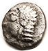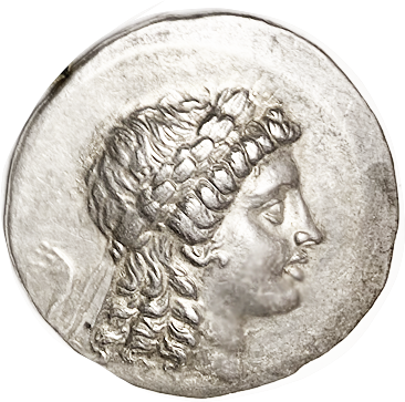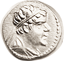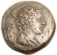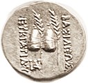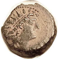 Æ23, c. 120-63 BC, Dionysos head r/Cista mystica & thyrsos,