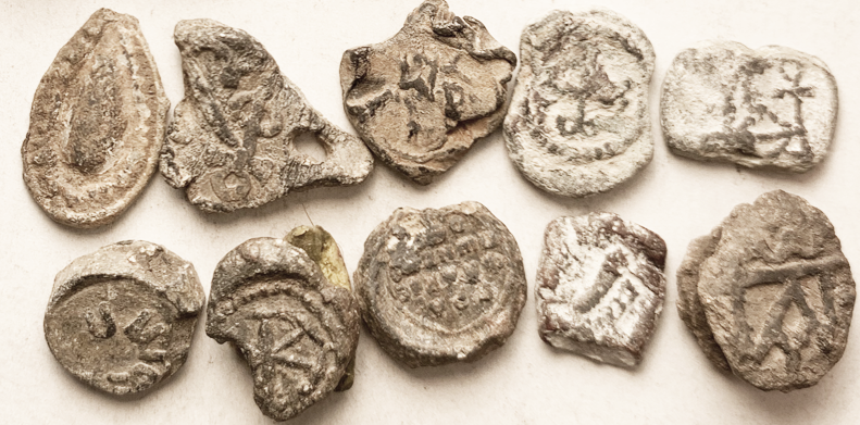 592 ROMAN, Spintriae (brothel tokens), couples in various sexual positions/