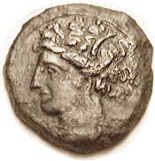 11 AUTOKANE, Æ8, c. 400-300 BC, Zeus head r/Female head l, lgnd; AVF, centered,