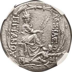7 ARMENIA, Tigranes II, 96-56 BC, Tet, Head rt in tiara/ Tyche std r, Orontes