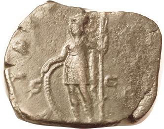 hldg Nike, lgnds, VF, dark patina with strong orangy